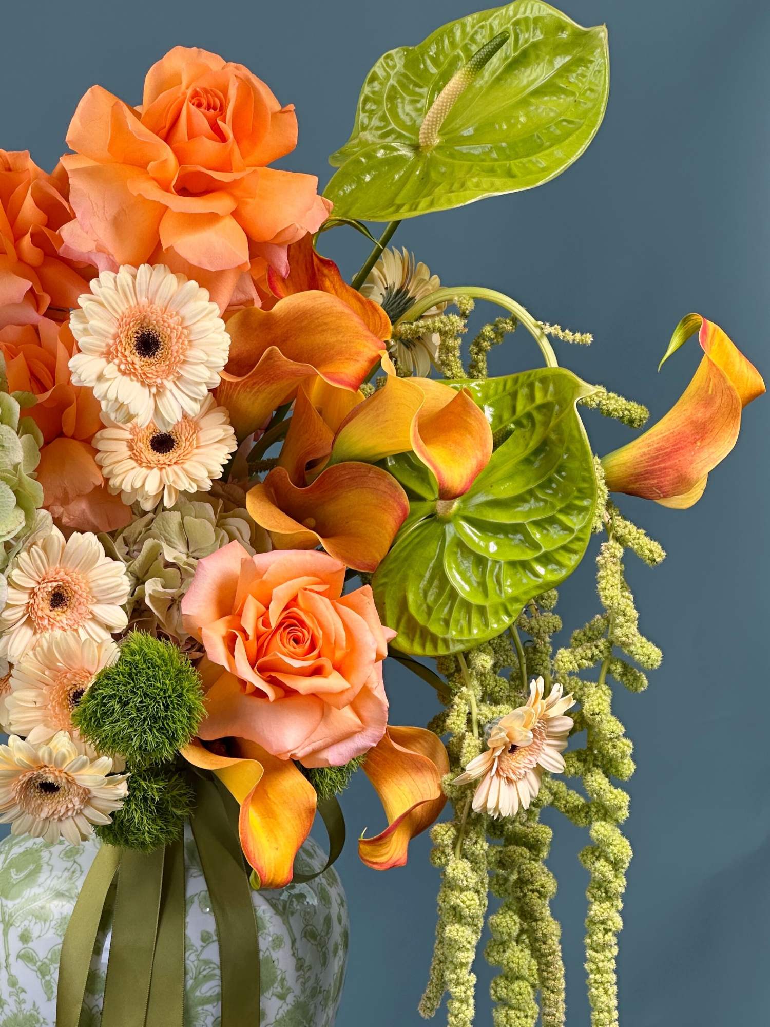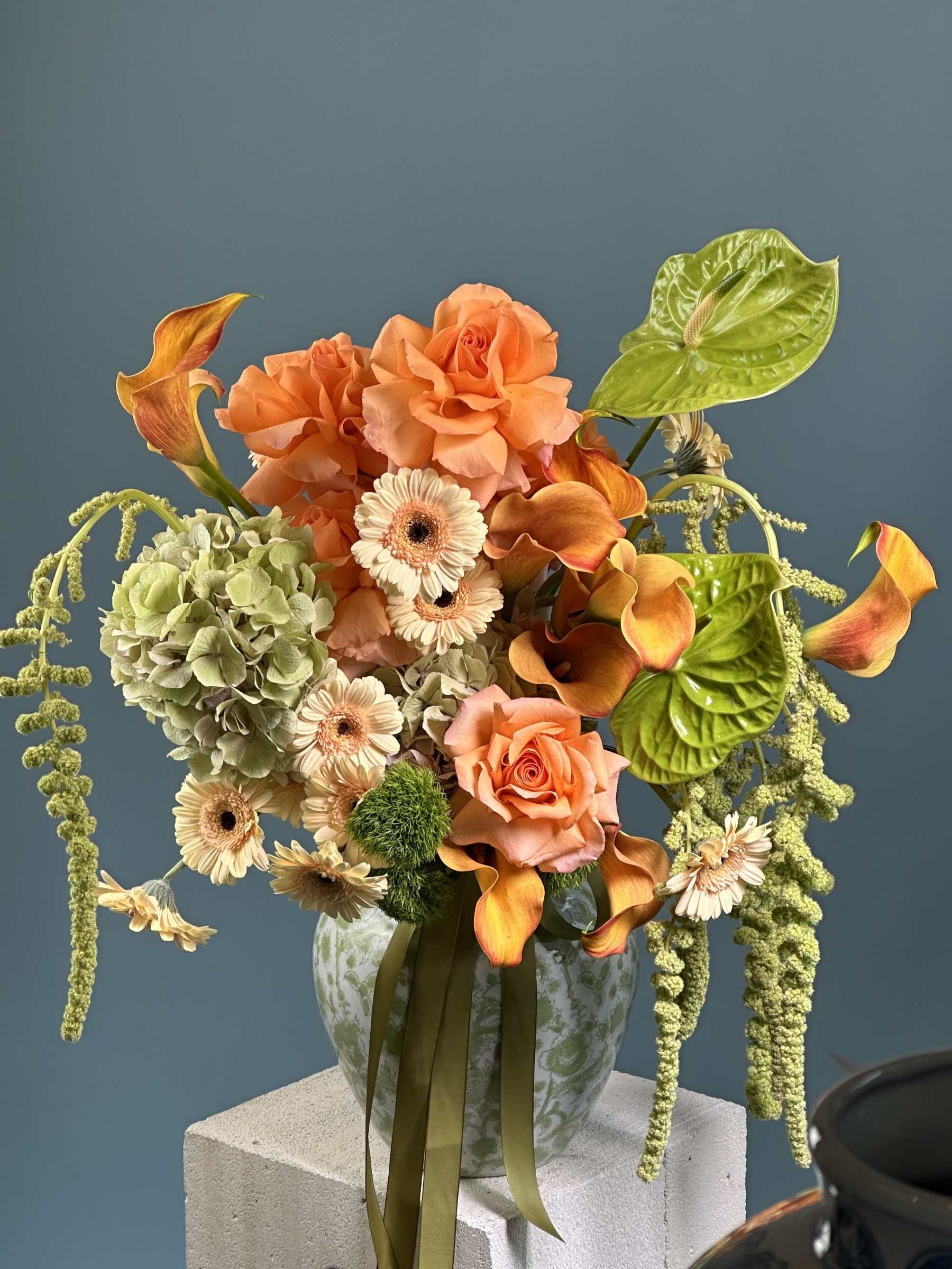 | В составе | Амарант ,Антуриум ,Гвоздика ,Гермини ,Гортензия ,Калла ,Роза французская |