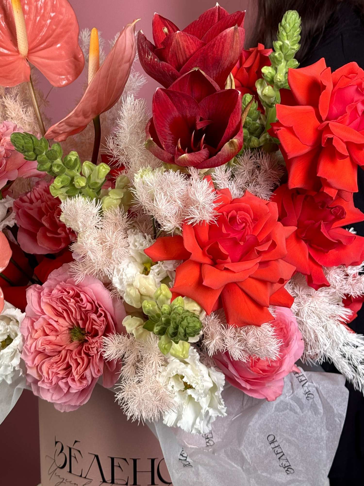 | В составе | Амариллис ,Антуриум ,Аспарагус стабилизированный ,Леувенбек ,Роза пионовидная ,Роза французская |