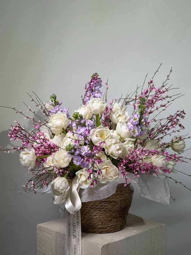 Хотим напомнить, что все наши букеты и композиции невозможно повторить в точности из-за природных особенностей и сезонности цветов, но мы обещаем сохранить размер, палитру и общее настроение композиции.