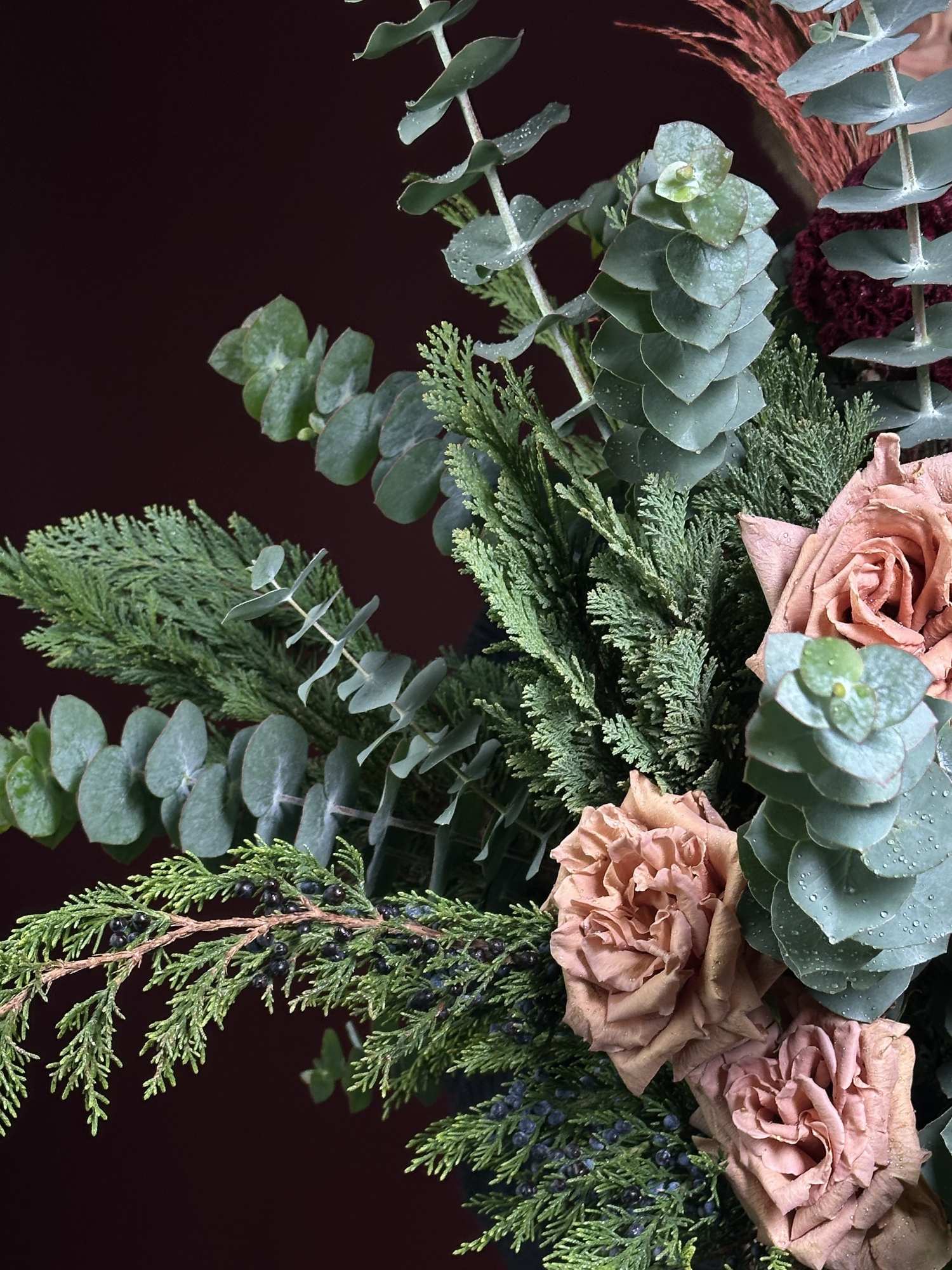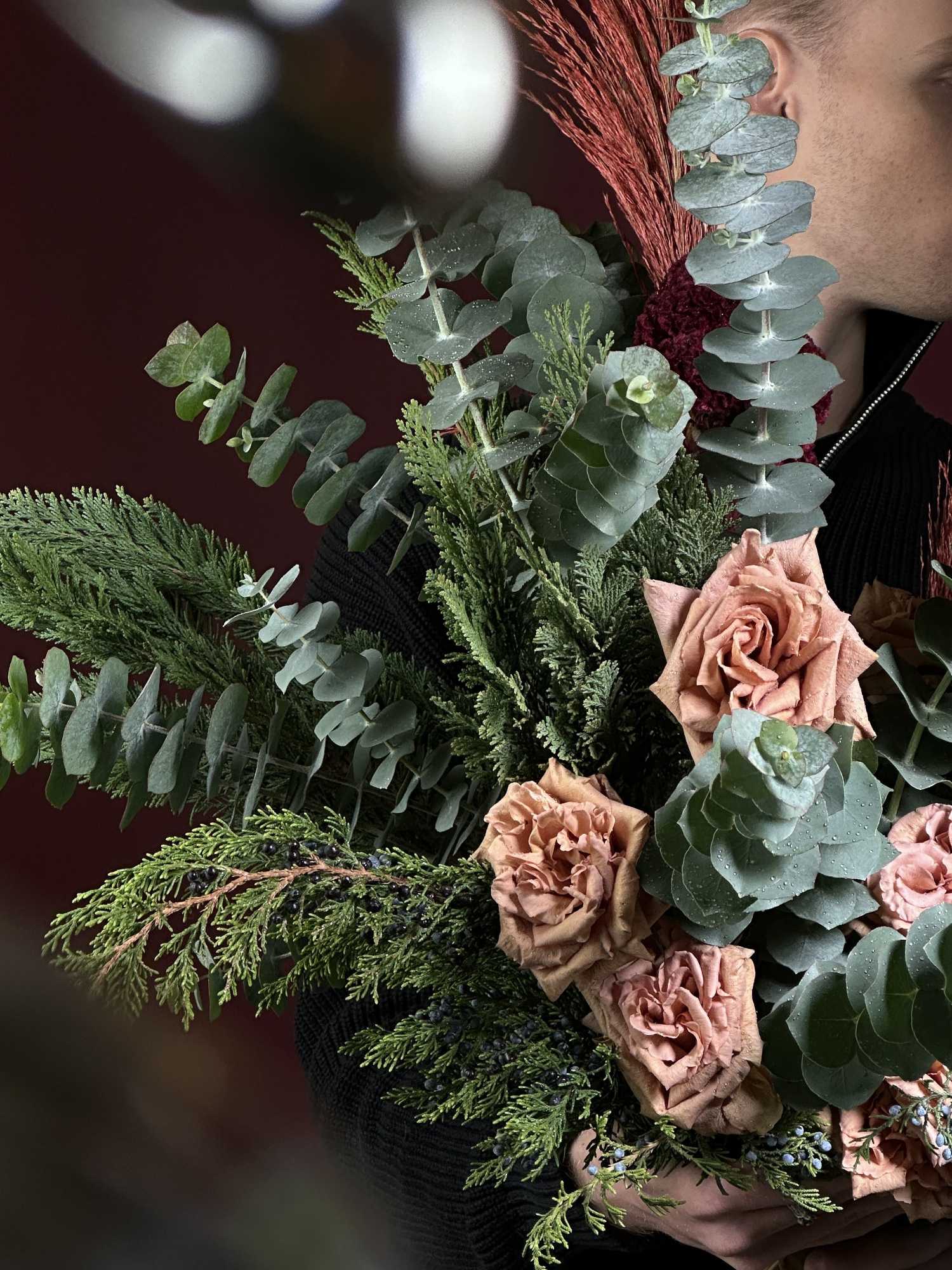 | В составе | Кортадерия ,Можевельник ,Роза тоффи ,Туя ,Целозия ,Эвкалипт |