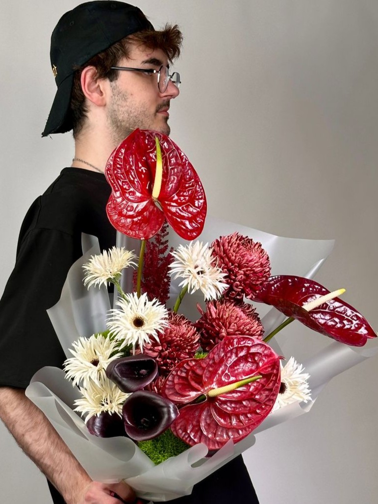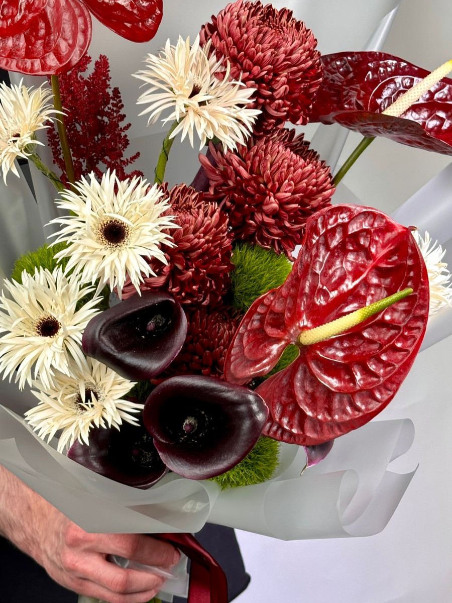 | В составе | Антуриум ,Астильба ,Гвоздика ,Гербера ,Калла ,Хризантема |