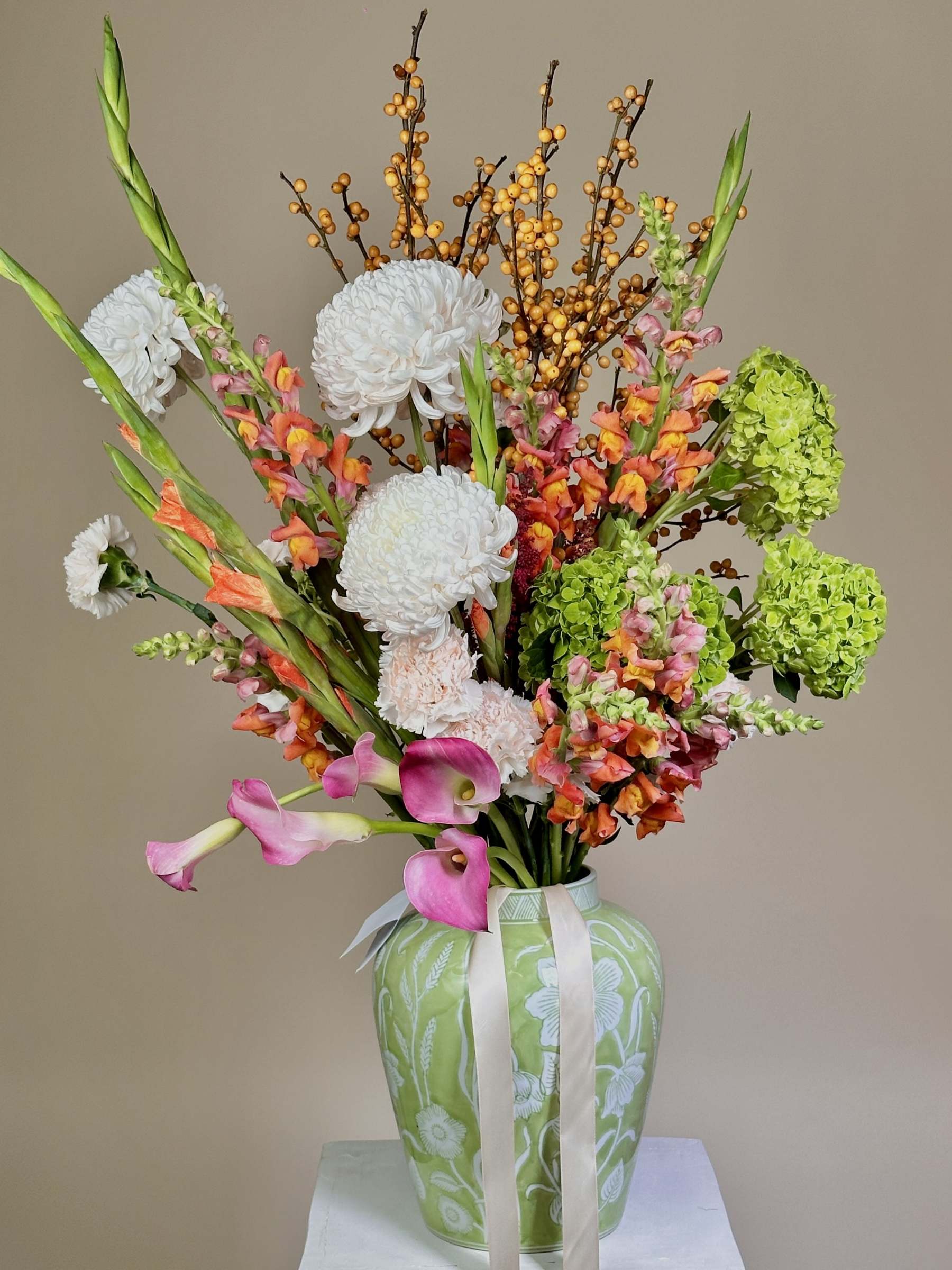 | В составе | Гвоздика ,Гладиолус ,Гортензия ,Калла ,Леувенбек ,Хризантема ,Ягоды илекса |