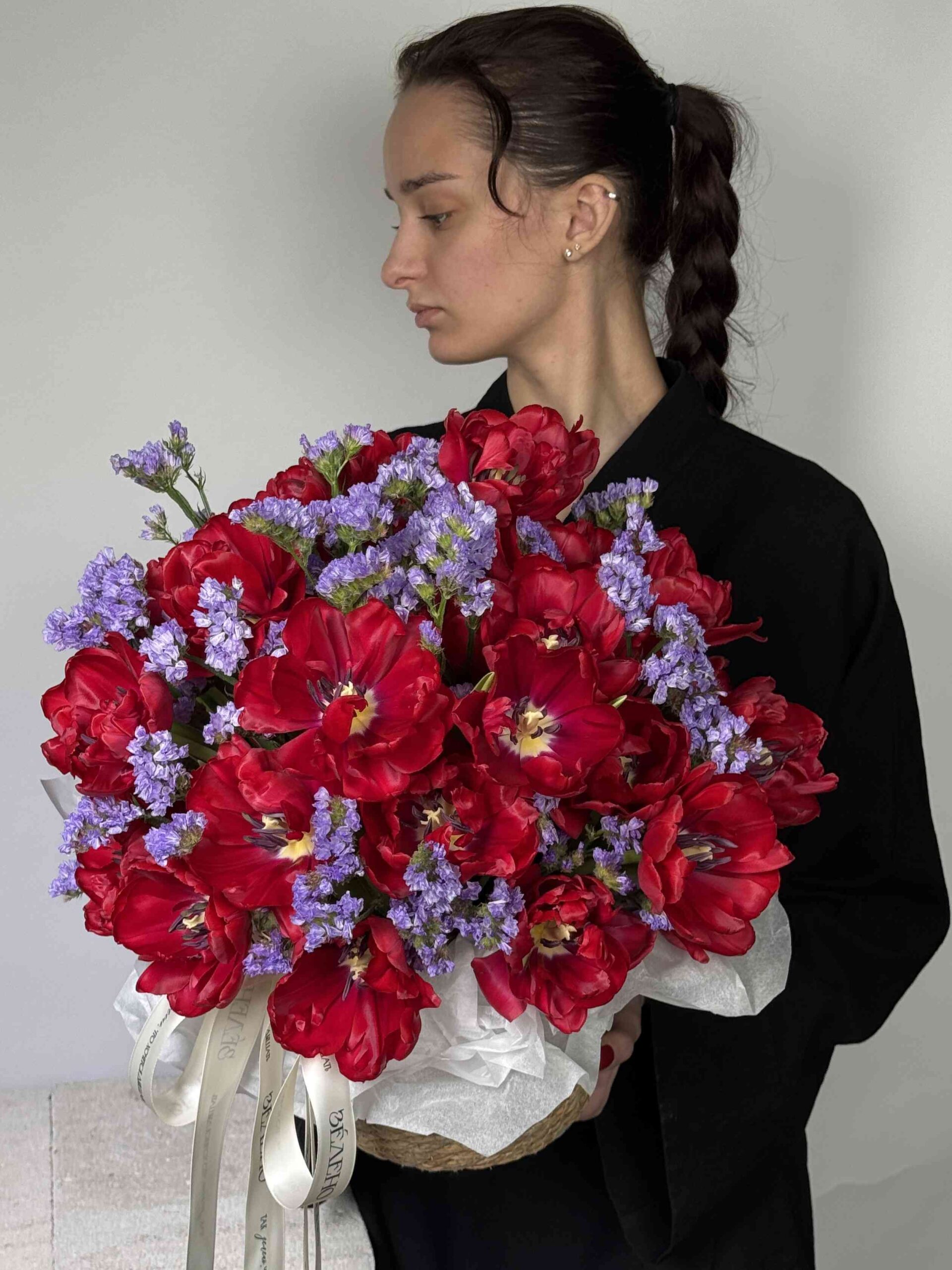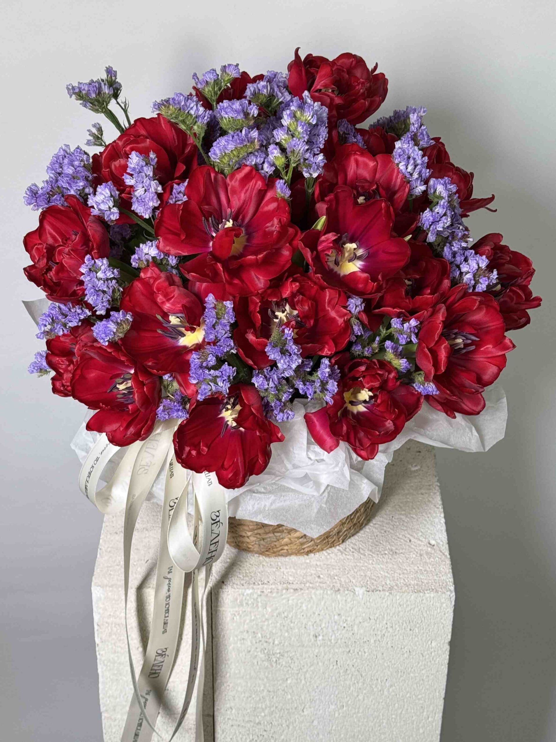 Корзина дуо тюльпаны и статица
