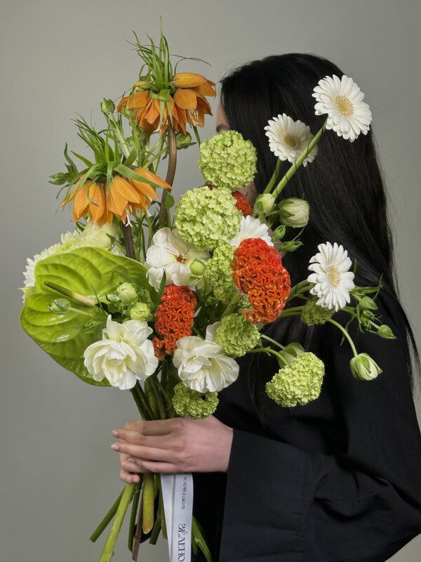Хотим напомнить, что все наши букеты и композиции невозможно повторить в точности из-за природных особенностей и сезонности цветов, но мы обещаем сохранить размер, палитру и общее настроение композиции.