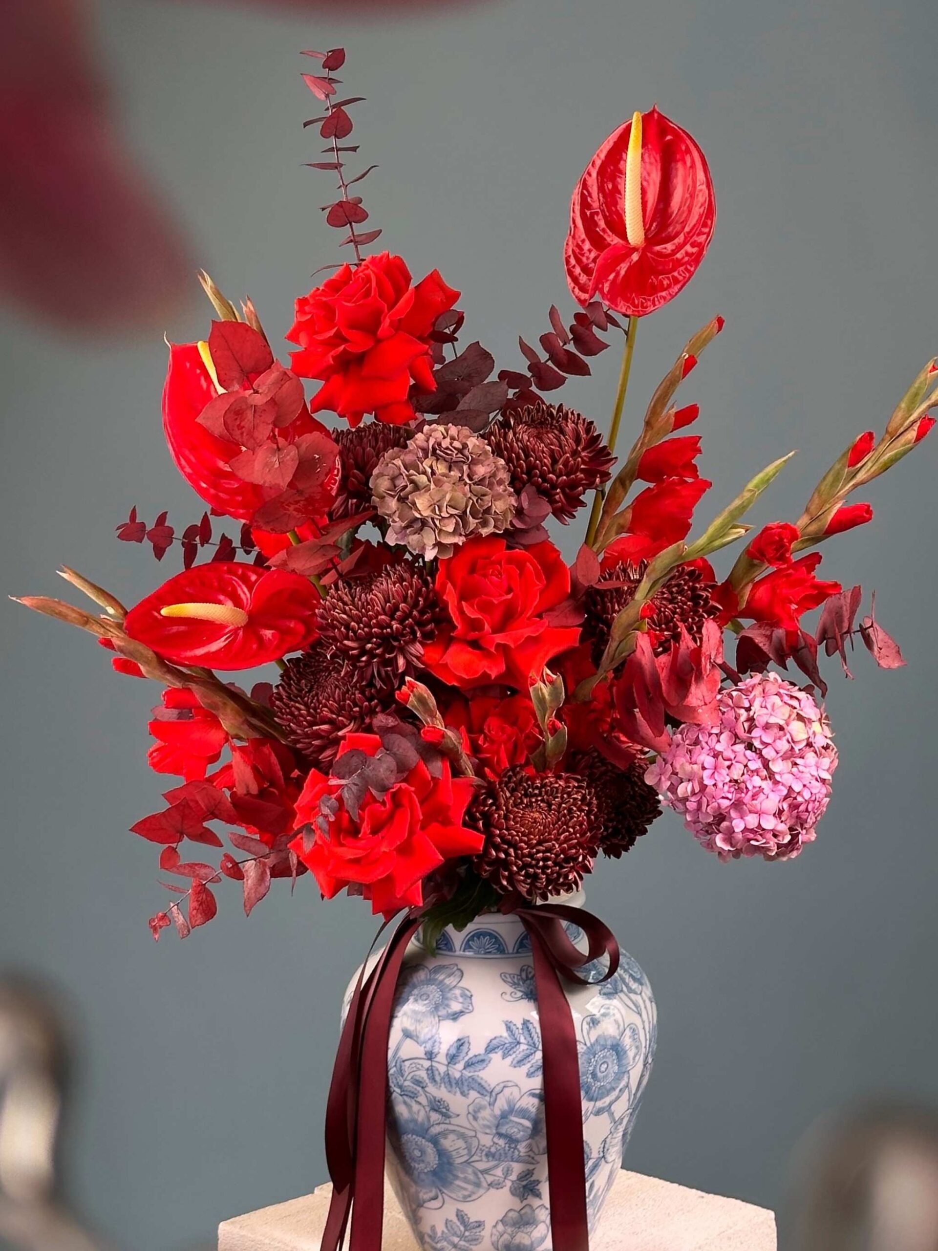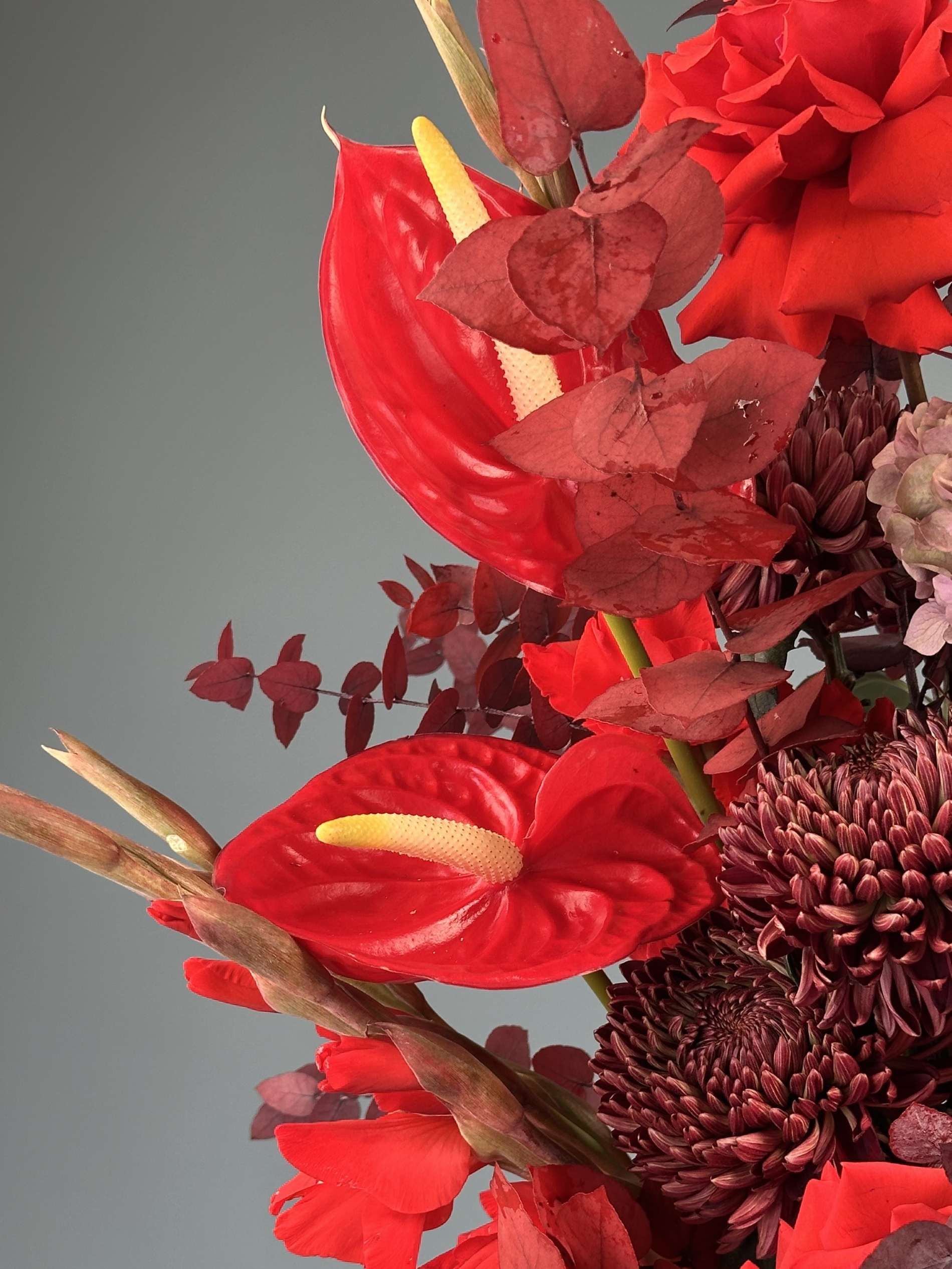 | В составе | Антуриум ,Гладиолус ,Гортензия ,Роза французская ,Хризантема ,Эвкалипт |