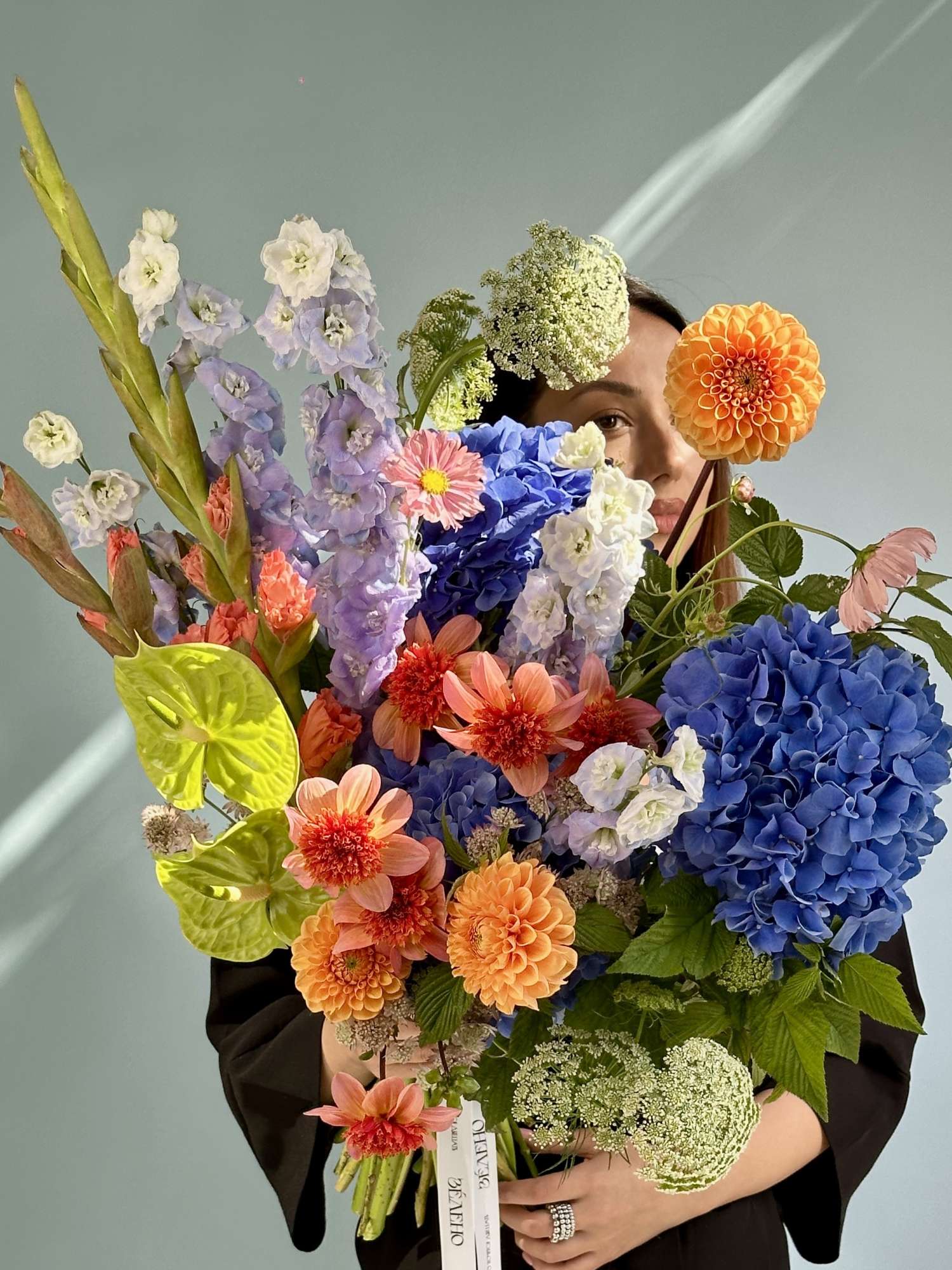 В составе | Амми ,Антуриум ,Астранция ,Георгин ,Гладиолус ,Гортензия ,Дельфиниум ,Космея ,Малина |