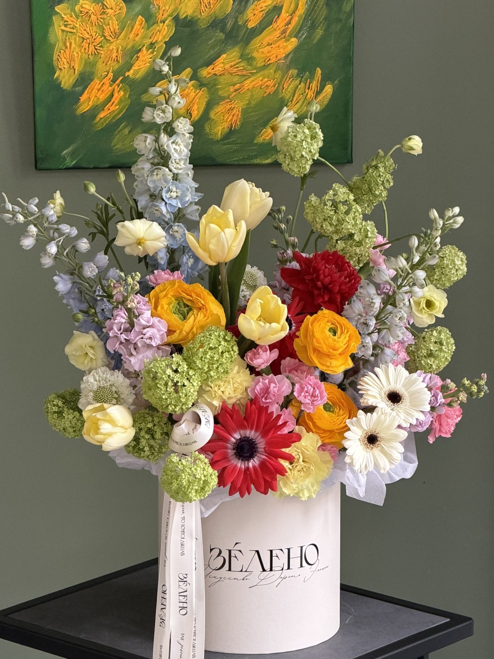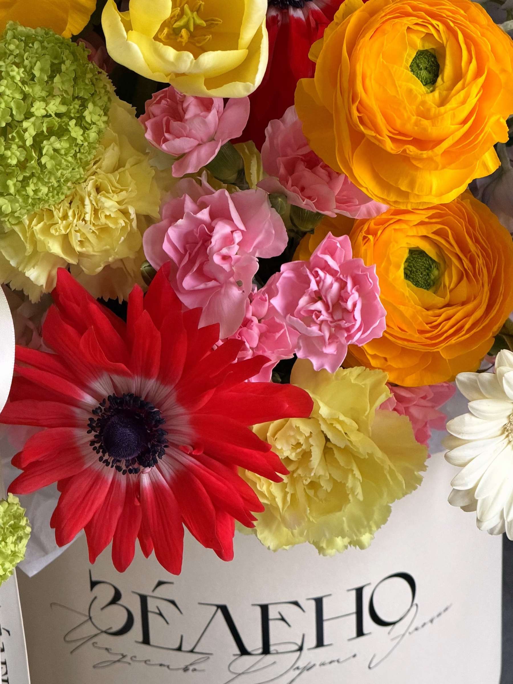 | В составе | Анемон, Вибурнум, Гвоздика, Гербера, Дельфиниум, Маттиола, Ранункулюс, Скабиоза, Тюльпан |