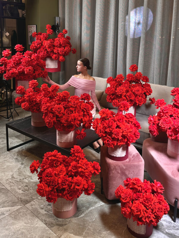 | В составе | Антуриум ,Гвоздика ,Леувенбек ,Лизиантус (эустома) ,Малина ,Молюцелла ,Пион ,Роза французская |