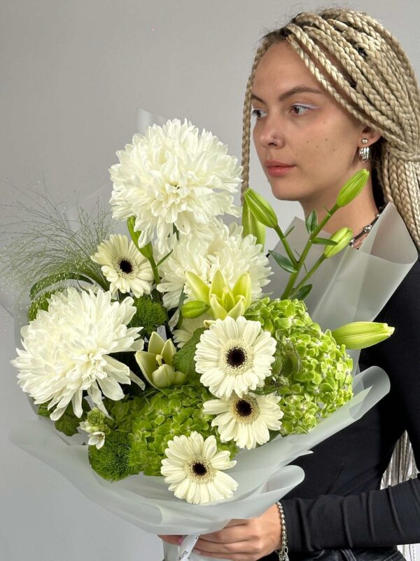 Хотим напомнить, что все наши букеты и композиции невозможно повторить в точности из-за природных особенностей и сезонности цветов, но мы обещаем сохранить размер, палитру и общее настроение композиции.