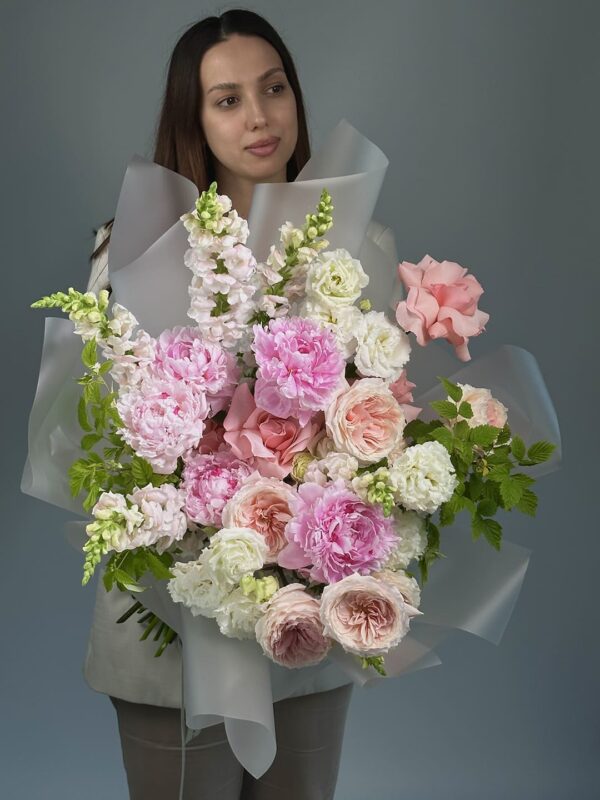 | В составе | Вибурнум ,Гвоздика ,Маттиола ,Роза пионовидная ,Роза французская ,Эремурус |