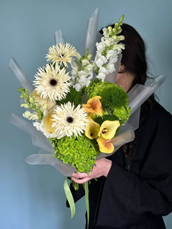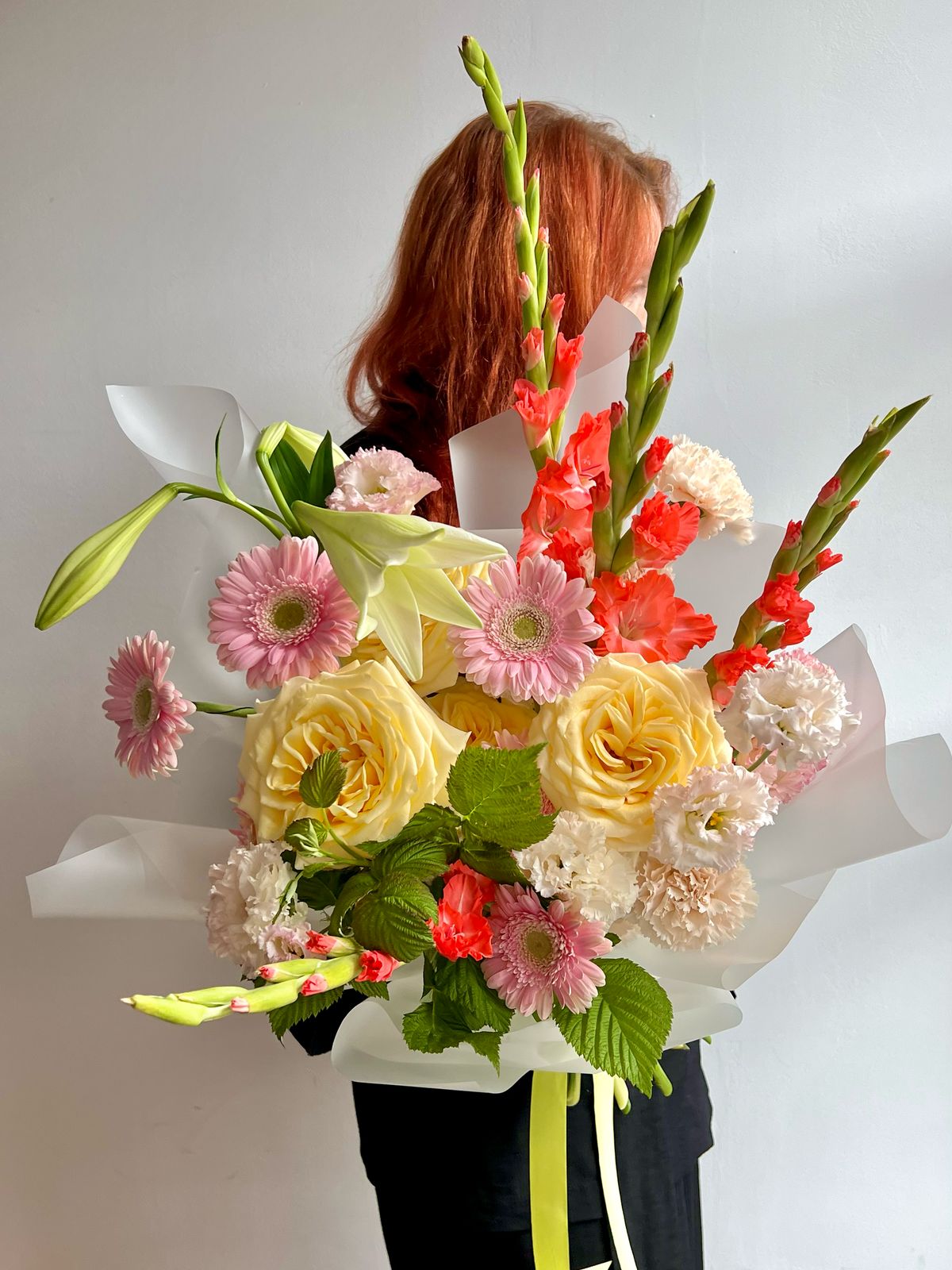 Букет, который поможет сделать Ваш день особенным! Собран с любовью и вдохновением. В составе: гермини, гладиолусы, пионовидные розы, эустома, лизиантус, гвоздика, лилия, малина