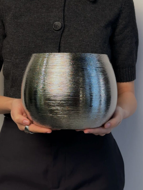 Пластичные изгибы поверхности создают причудливую игру света в интерьере. Подходит для высоких цветов, в ней хорошо будут смотреться как моно-композиции, так и сборные букеты.