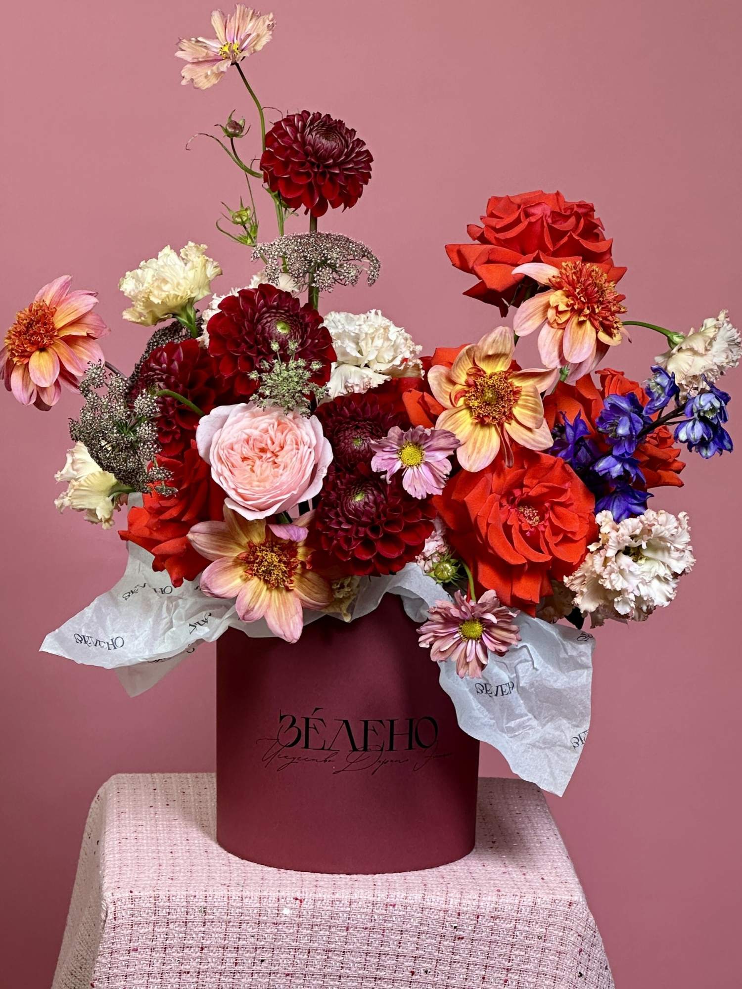 Хотим напомнить, что все наши букеты и композиции невозможно повторить в точности из-за природных особенностей и сезонности цветов, но мы обещаем сохранить размер, палитру и общее настроение композиции.