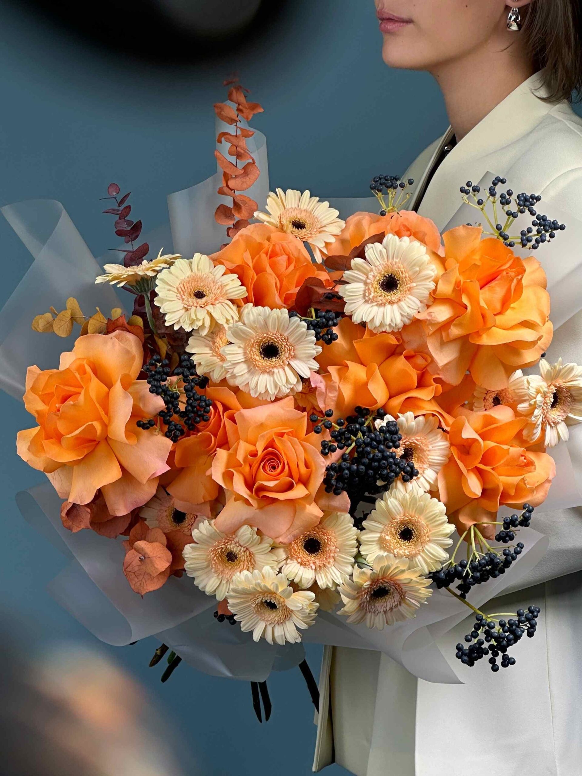Хотим напомнить, что все наши букеты и композиции невозможно повторить в точности из-за природных особенностей и сезонности цветов, но мы обещаем сохранить размер, палитру и общее настроение композиции.